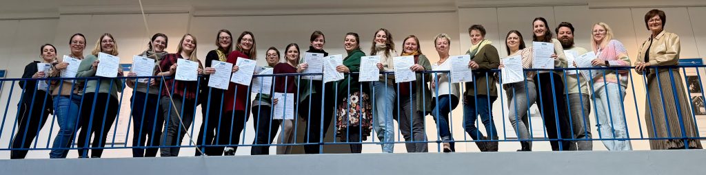 Die Weiterbildung beinhaltet alle Grund- und mindestens 3 Wahlbausteine sowie den Basiskurs, den Mittelteil und den Zertifizierungskurs.